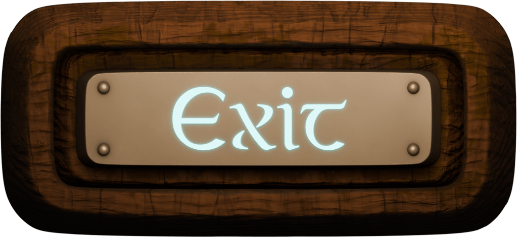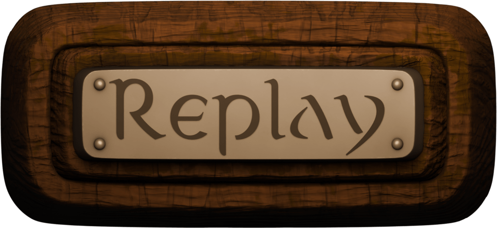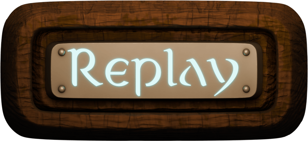 Examples of some of the menu UI, depiction the Start, Exit and Replay buttons in their various states, unpressed and pressed. Unlike the rest, these were rendered as images and placed into the game rather than physical models within the game world.
