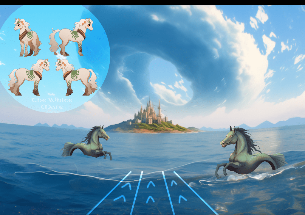 Further planned levels would include other characters. Namely the White Mare, who would effectively take over as the player character for the second level, in which she would be carrying Oisín and Niamh across the ocean to the titular island of Tír na nÓg.